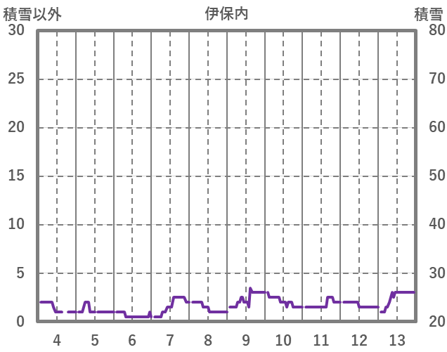 | 日 | 時 | 気温 | 降水 | 風向/風速 | 日照 | 積雪 | 降雪 |