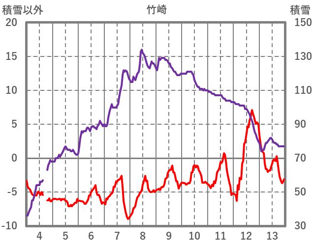 | 日 | 時 | 気温 | 降水 | 風向/風速 | 日照 | 積雪 | 降雪 |