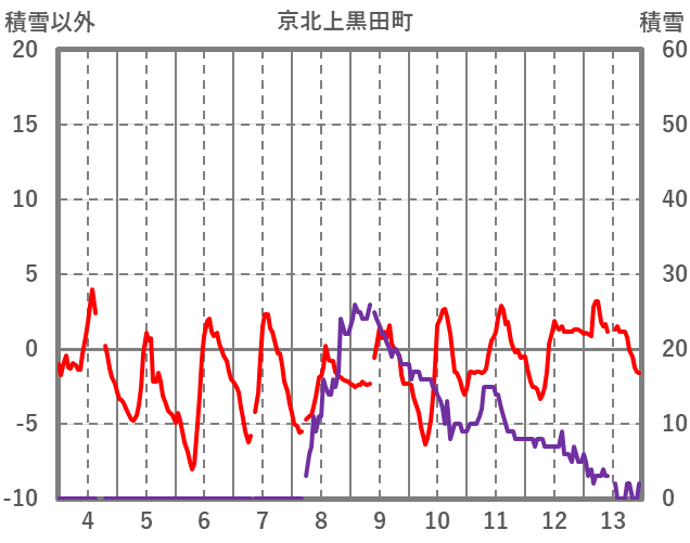 | 日 | 時 | 気温 | 降水 | 風向/風速 | 日照 | 積雪 | 降雪 |
