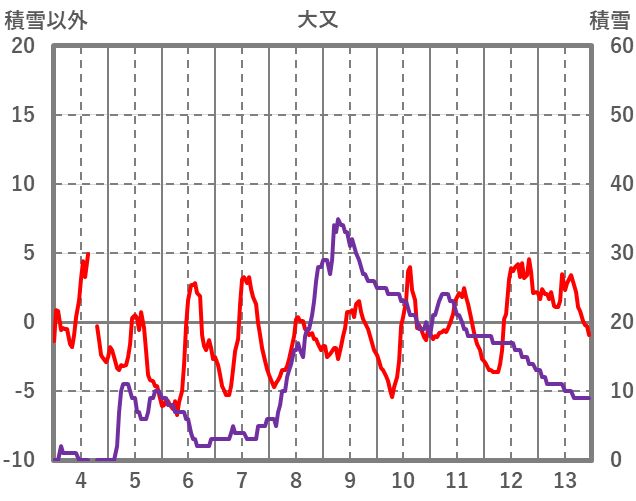 | 日 | 時 | 気温 | 降水 | 風向/風速 | 日照 | 積雪 | 降雪 |