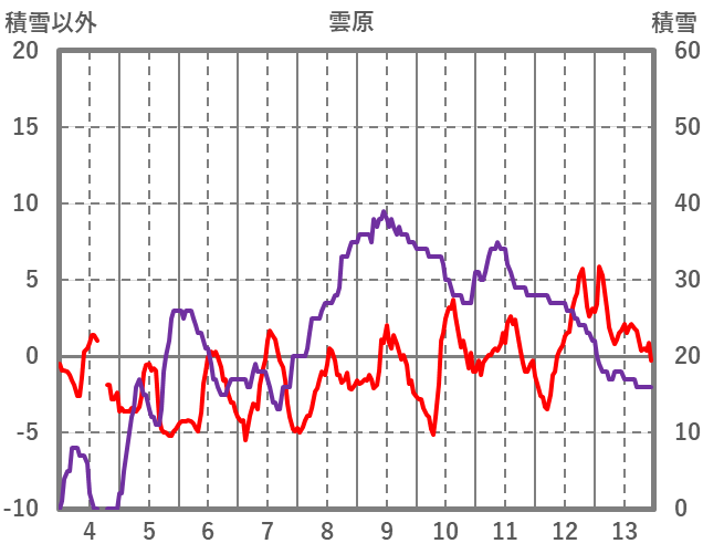 | 日 | 時 | 気温 | 降水 | 風向/風速 | 日照 | 積雪 | 降雪 |