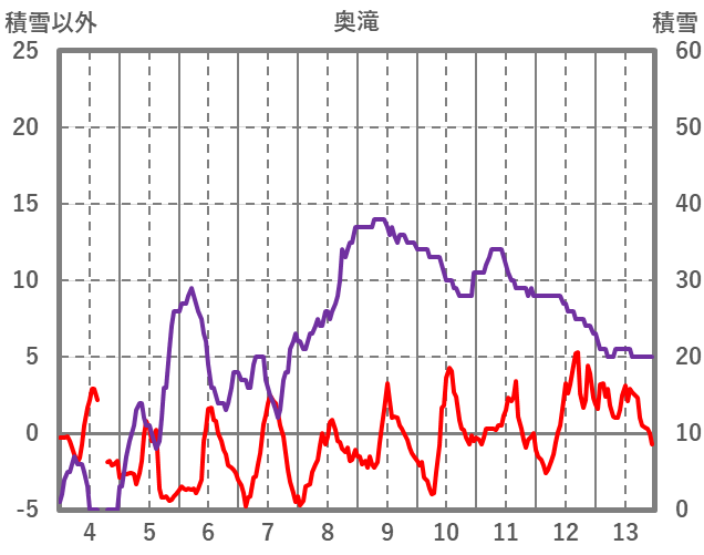 | 日 | 時 | 気温 | 降水 | 風向/風速 | 日照 | 積雪 | 降雪 |