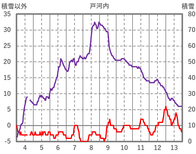 | 日 | 時 | 気温 | 降水 | 風向/風速 | 日照 | 積雪 | 降雪 |