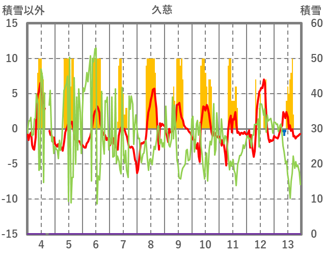 | 日 | 時 | 気温 | 降水 | 風向/風速 | 日照 | 積雪 | 降雪 |