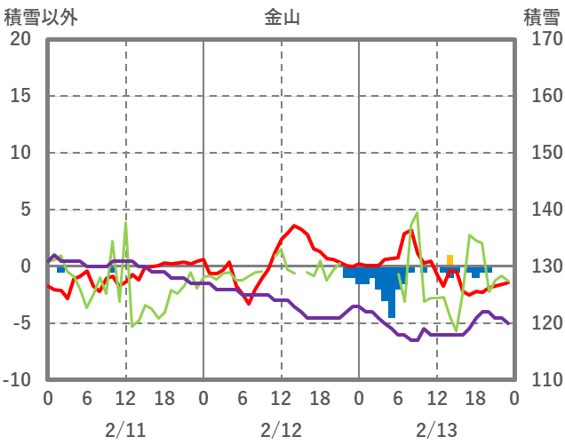 | 日 | 時 | 気温 | 降水 | 風向/風速 | 日照 | 積雪 | 降雪 |