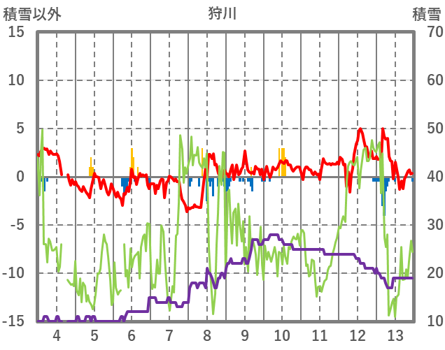 | 日 | 時 | 気温 | 降水 | 風向/風速 | 日照 | 積雪 | 降雪 |