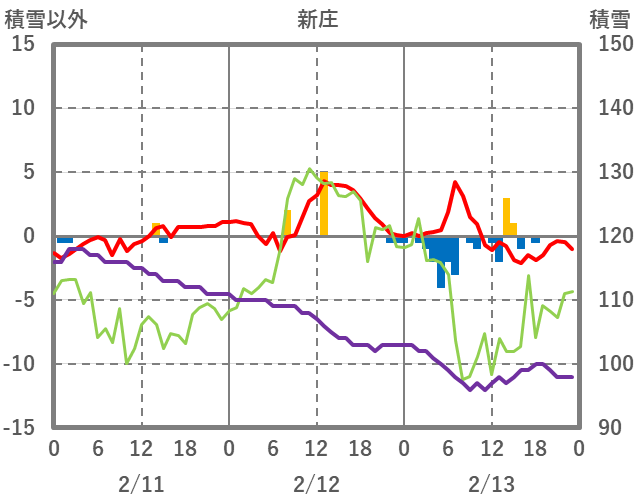 | 日 | 時 | 気温 | 降水 | 風向/風速 | 日照 | 積雪 | 降雪 |