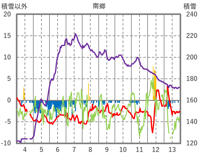 | 日 | 時 | 気温 | 降水 | 風向/風速 | 日照 | 積雪 | 降雪 |