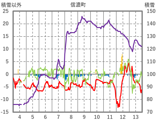 | 日 | 時 | 気温 | 降水 | 風向/風速 | 日照 | 積雪 | 降雪 |