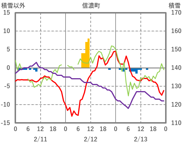 | 日 | 時 | 気温 | 降水 | 風向/風速 | 日照 | 積雪 | 降雪 |
