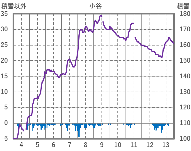 | 日 | 時 | 気温 | 降水 | 風向/風速 | 日照 | 積雪 | 降雪 |