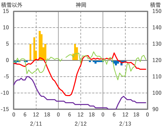 | 日 | 時 | 気温 | 降水 | 風向/風速 | 日照 | 積雪 | 降雪 |