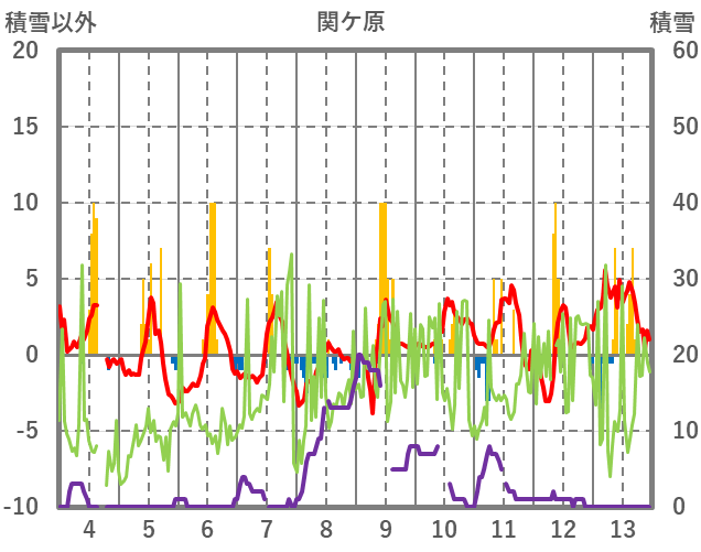 | 日 | 時 | 気温 | 降水 | 風向/風速 | 日照 | 積雪 | 降雪 |