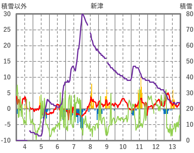| 日 | 時 | 気温 | 降水 | 風向/風速 | 日照 | 積雪 | 降雪 |