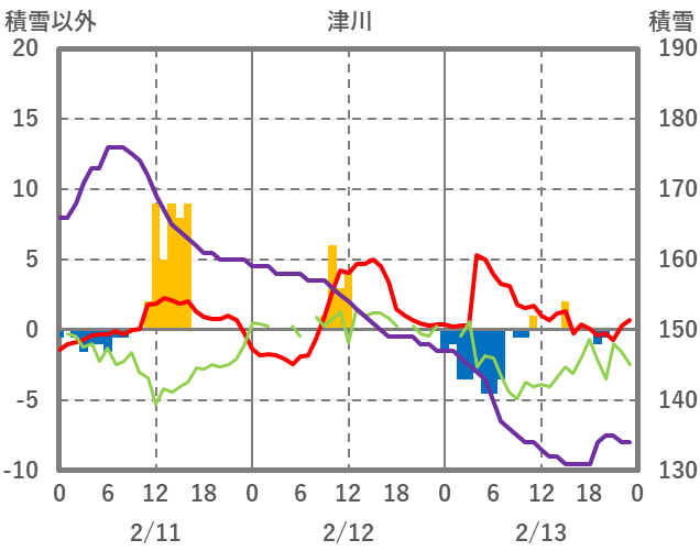 | 日 | 時 | 気温 | 降水 | 風向/風速 | 日照 | 積雪 | 降雪 |