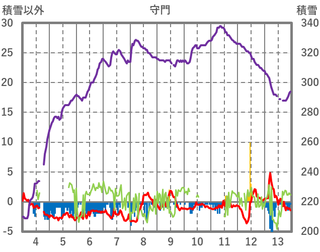 | 日 | 時 | 気温 | 降水 | 風向/風速 | 日照 | 積雪 | 降雪 |