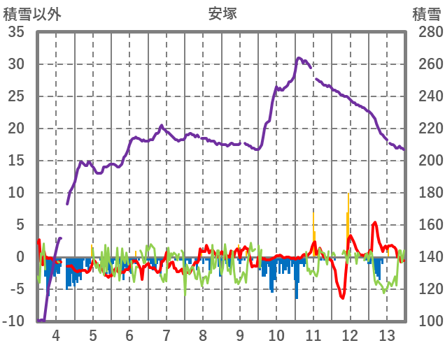 | 日 | 時 | 気温 | 降水 | 風向/風速 | 日照 | 積雪 | 降雪 |