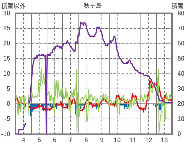 | 日 | 時 | 気温 | 降水 | 風向/風速 | 日照 | 積雪 | 降雪 |
