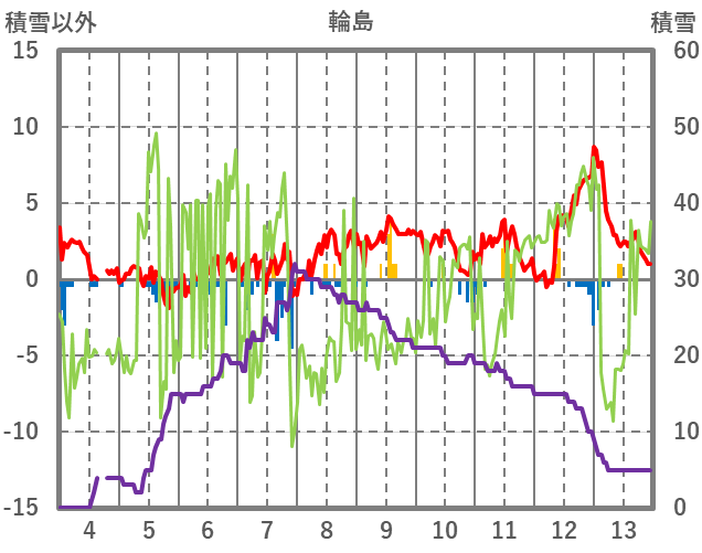 | 日 | 時 | 気温 | 降水 | 風向/風速 | 日照 | 積雪 | 降雪 |