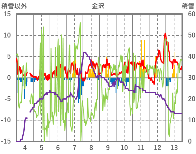 | 日 | 時 | 気温 | 降水 | 風向/風速 | 日照 | 積雪 | 降雪 |
