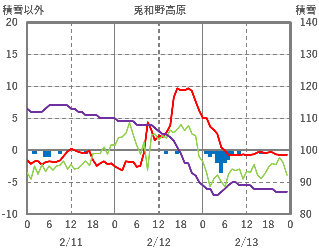 | 日 | 時 | 気温 | 降水 | 風向/風速 | 日照 | 積雪 | 降雪 |