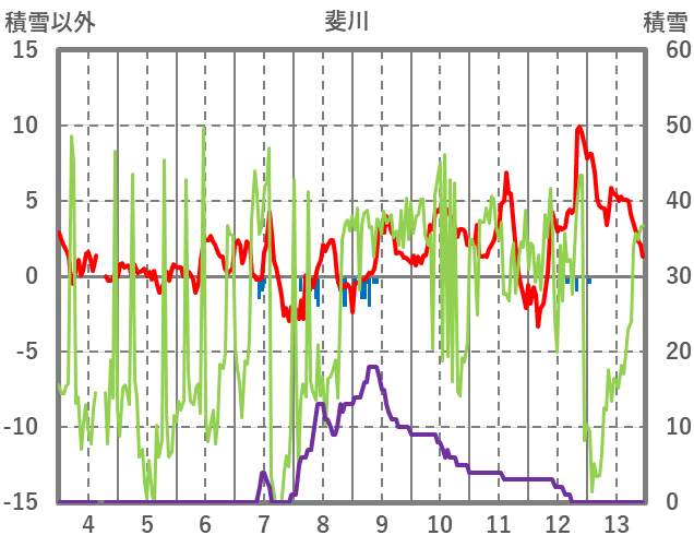 | 日 | 時 | 気温 | 降水 | 風向/風速 | 日照 | 積雪 | 降雪 |