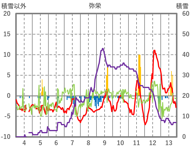 | 日 | 時 | 気温 | 降水 | 風向/風速 | 日照 | 積雪 | 降雪 |