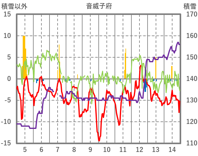 | 日 | 時 | 気温 | 降水 | 風向/風速 | 日照 | 積雪 | 降雪 |