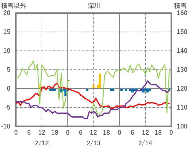 | 日 | 時 | 気温 | 降水 | 風向/風速 | 日照 | 積雪 | 降雪 |