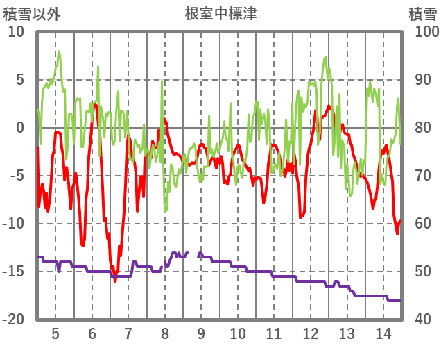 | 日 | 時 | 気温 | 降水 | 風向/風速 | 日照 | 積雪 | 降雪 |