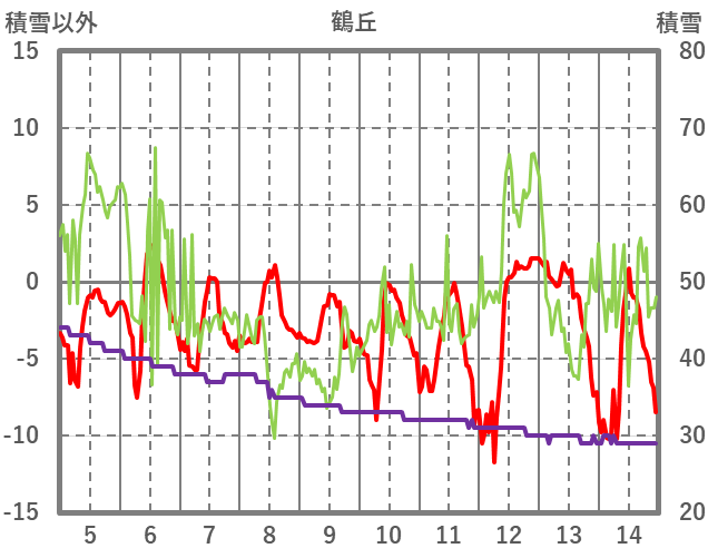 | 日 | 時 | 気温 | 降水 | 風向/風速 | 日照 | 積雪 | 降雪 |