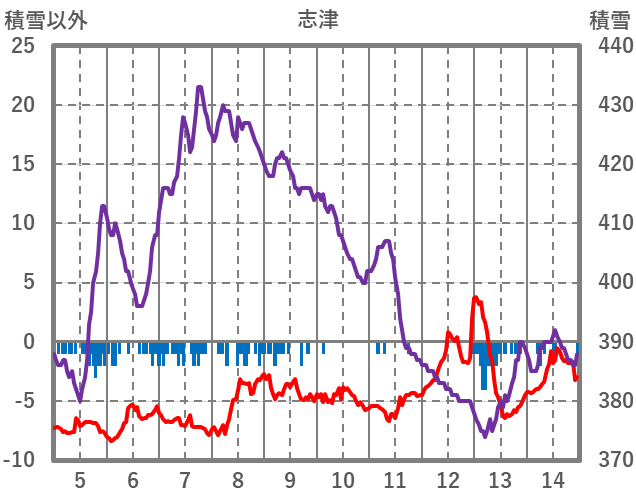 | 日 | 時 | 気温 | 降水 | 風向/風速 | 日照 | 積雪 | 降雪 |
