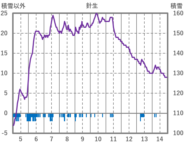 | 日 | 時 | 気温 | 降水 | 風向/風速 | 日照 | 積雪 | 降雪 |