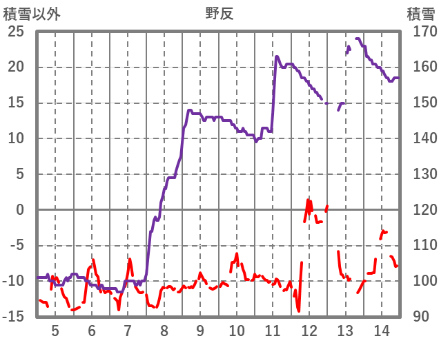 | 日 | 時 | 気温 | 降水 | 風向/風速 | 日照 | 積雪 | 降雪 |