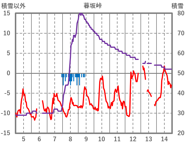 | 日 | 時 | 気温 | 降水 | 風向/風速 | 日照 | 積雪 | 降雪 |