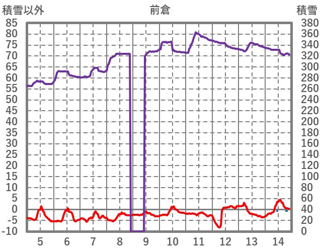 | 日 | 時 | 気温 | 降水 | 風向/風速 | 日照 | 積雪 | 降雪 |