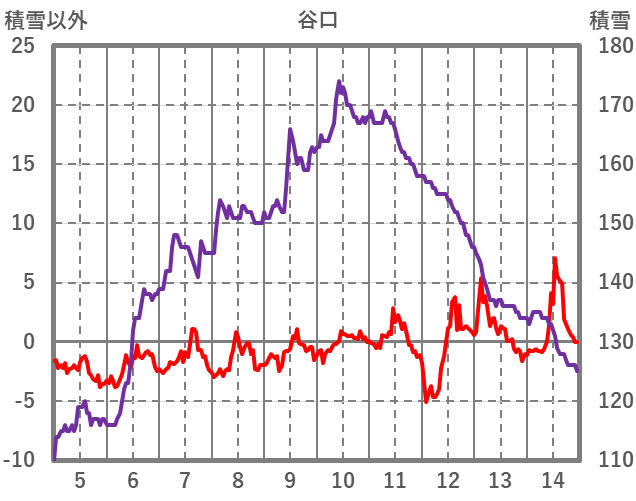 | 日 | 時 | 気温 | 降水 | 風向/風速 | 日照 | 積雪 | 降雪 |