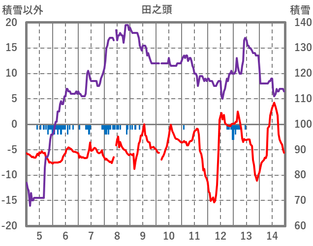 | 日 | 時 | 気温 | 降水 | 風向/風速 | 日照 | 積雪 | 降雪 |