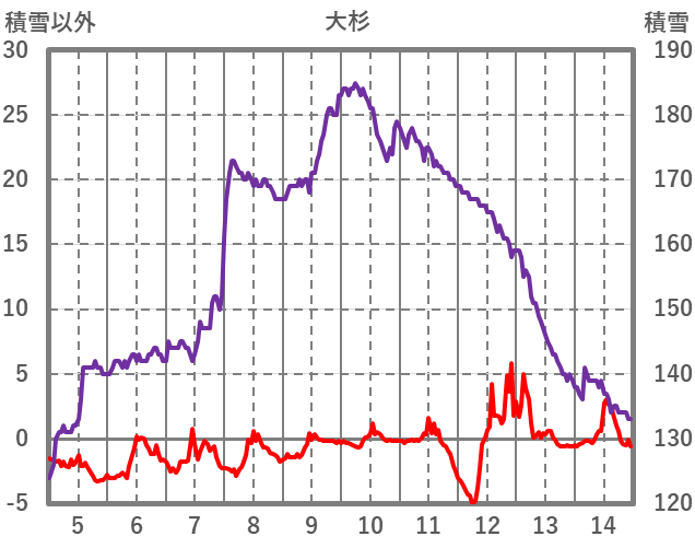 | 日 | 時 | 気温 | 降水 | 風向/風速 | 日照 | 積雪 | 降雪 |