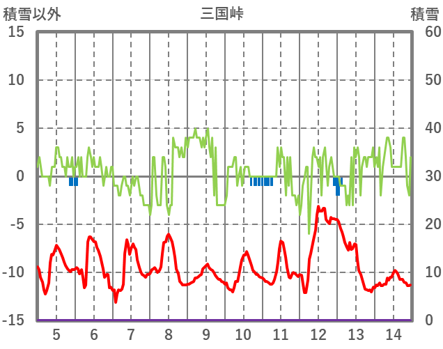 | 日 | 時 | 気温 | 降水 | 風向/風速 | 日照 | 積雪 | 降雪 |