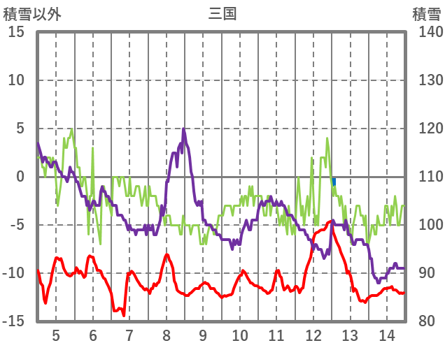 | 日 | 時 | 気温 | 降水 | 風向/風速 | 日照 | 積雪 | 降雪 |
