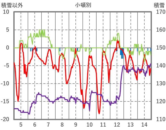 | 日 | 時 | 気温 | 降水 | 風向/風速 | 日照 | 積雪 | 降雪 |