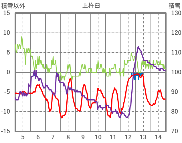 | 日 | 時 | 気温 | 降水 | 風向/風速 | 日照 | 積雪 | 降雪 |