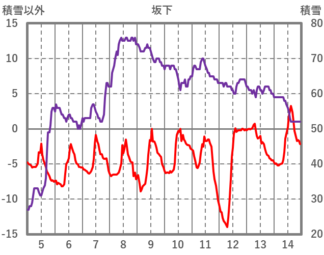 | 日 | 時 | 気温 | 降水 | 風向/風速 | 日照 | 積雪 | 降雪 |