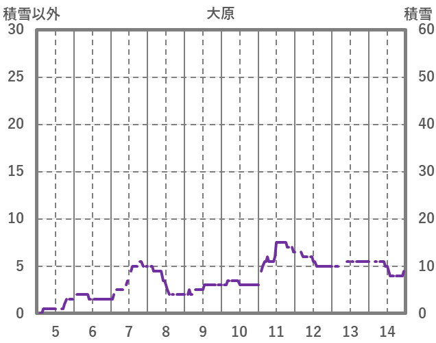 | 日 | 時 | 気温 | 降水 | 風向/風速 | 日照 | 積雪 | 降雪 |