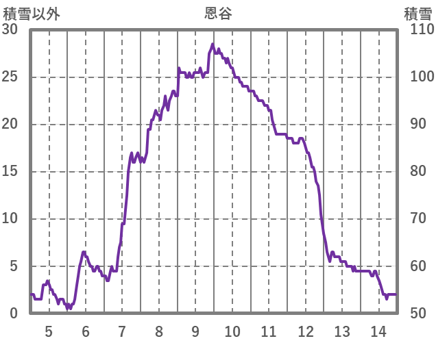 | 日 | 時 | 気温 | 降水 | 風向/風速 | 日照 | 積雪 | 降雪 |