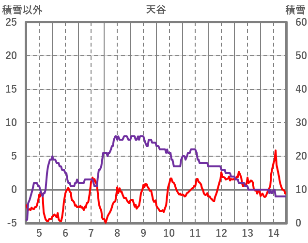 | 日 | 時 | 気温 | 降水 | 風向/風速 | 日照 | 積雪 | 降雪 |