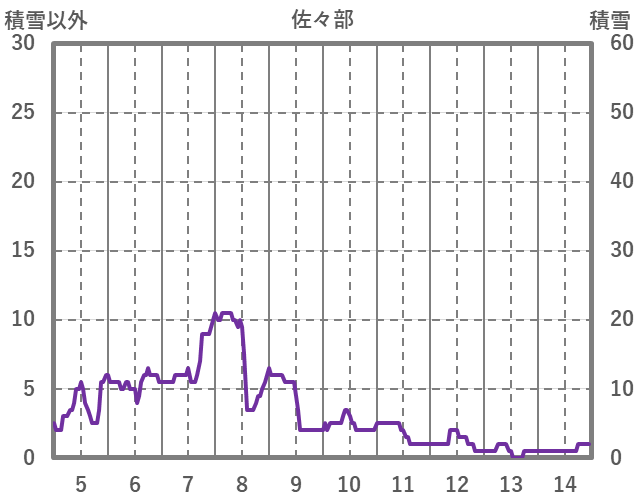 | 日 | 時 | 気温 | 降水 | 風向/風速 | 日照 | 積雪 | 降雪 |