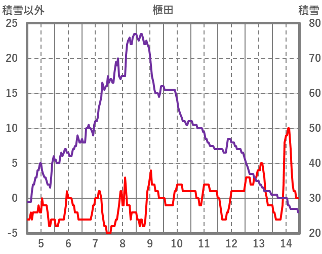 | 日 | 時 | 気温 | 降水 | 風向/風速 | 日照 | 積雪 | 降雪 |