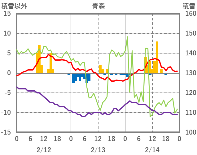 | 日 | 時 | 気温 | 降水 | 風向/風速 | 日照 | 積雪 | 降雪 |